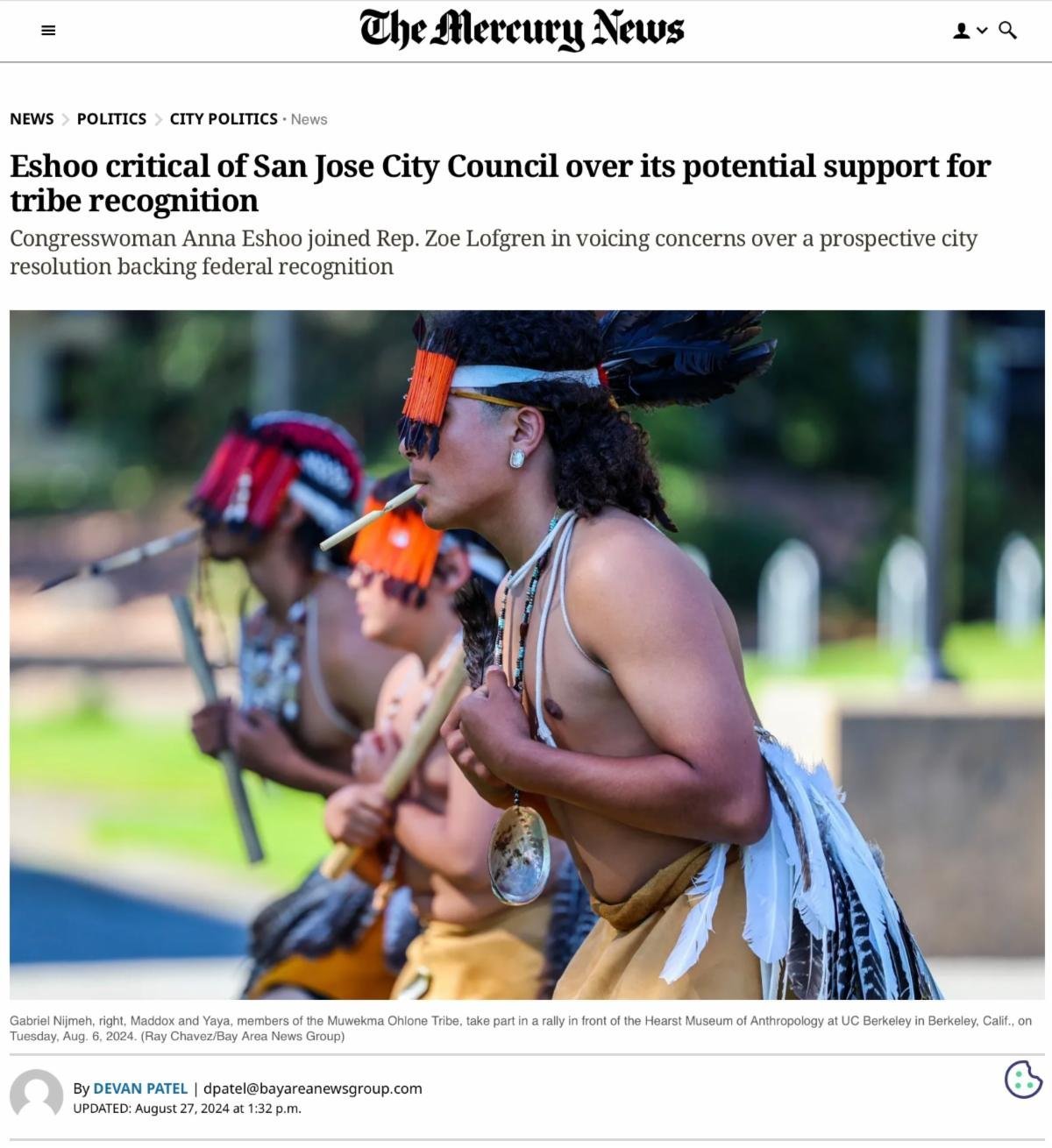 On August 13, 2024, the Muwekma Tribe held a rally on the steps of San Jose City Hall where Chairman Nijmeh gave me her endorsement.